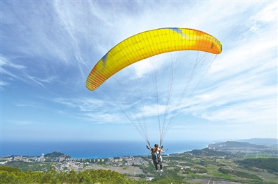 “五一”假日期间,跳伞、滑翔伞等低空旅游项目成为海南众多年轻游客的“新宠”。刺激又新奇的游玩方式给游客带来了不一样的体验,也进一步激发了旅游消费活力。 新华社记者 郭程 摄