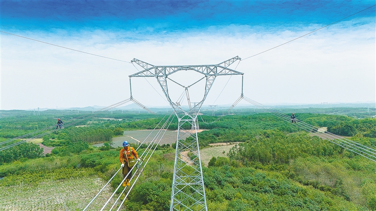 近日,施工人员对海南500千伏三亚输变电工程(线路部分)开展巡检工作。