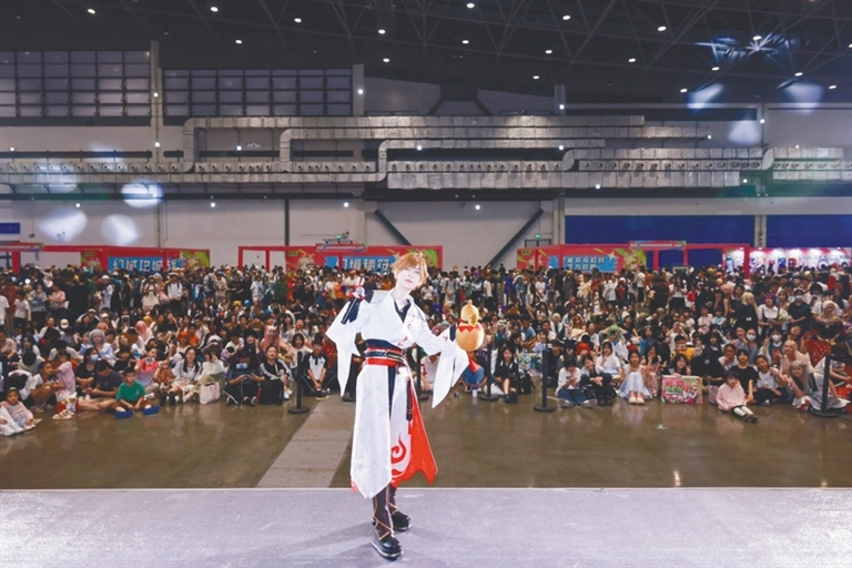 ③近日,海口第四届CCK国漫游戏文化展上,众多粉丝观看动漫人物cosplay表演。