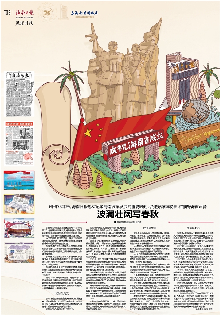 75年来,海南发展的每一个重大历史节点,海南日报从未缺席。因党而生、随党而行、伴党而兴、为党而战,海南日报坚决扛起不负党和人民重托的媒体担当。