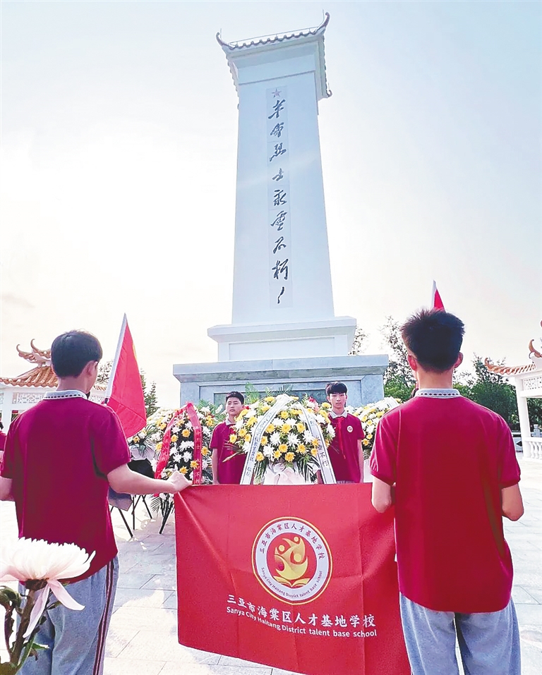 “出发!”2025年4月的一天,迎着朝阳,三亚海棠区人才基地学校385名师生,徒步前往仲田岭革命烈士纪念碑,缅怀先烈,为长眠于此的革命烈士敬献鲜花。