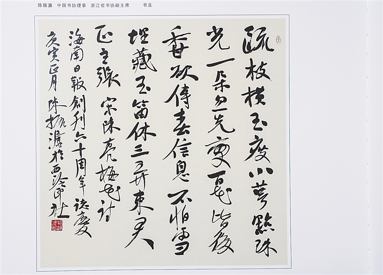 从名家力作到职工手迹,从名人寄语到读者心声,每一件书法作品都值得珍藏,都是《海南日报》成长发展的见证。正如陈洪所言:“书法是无声的诗,报纸是有形的史。当两者相遇,便是海南文化元素的二重奏。”从一缕墨香出发,《海南日报》的精彩故事,仍在继续书写。