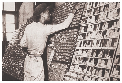 铅字铸好了,接着就是排版环节。这个环节吴毓和再熟悉不过,刚工作那会,他就负责拣字。他印象中的排字车间里,摆着一排又一排高大的字架,从上到下分为无数个小格子,每个格子里都是不同的铅字。夜里,他们等文稿出来后,就对照着拣字。