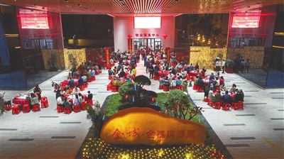 “新年快乐,干杯!”今年春节前夕,定安县金城·金嘉房源居项目内洋溢着浓厚的节日氛围,400余名业主齐聚一堂,共同参与海南金城举办的“金城安居团圆宴 美好生活新启航”新春团圆联谊活动,在喜迁新居的氛围中迎接新年的到来。