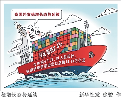 海关总署统计分析司司长吕大良表示,今年以来,各地各部门同心聚力,有效应对外部冲击,推动我国经济持续回升向好,外贸延续平稳增长态势。