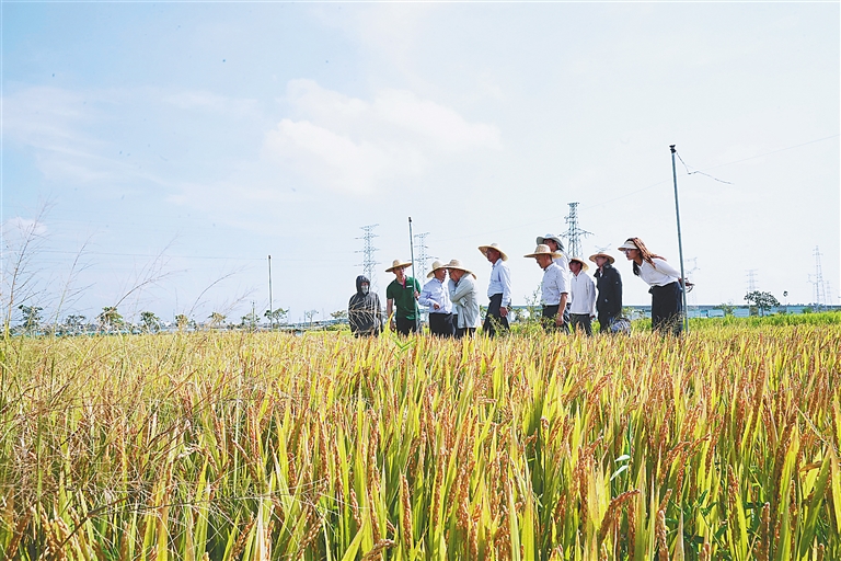 本报三亚5月10日电(海南日报全媒体记者黄媛艳)5月9日,“京粳香8号三亚生态区高产优质高效栽培技术示范”项目在三亚崖州区坝头示范区举行实产验收会。经现场考察,实地收割3个田块,“京粳香8号”平均亩产达587.12公斤。该品种的进一步示范推广,可填补海南优质粳稻种植空白。
