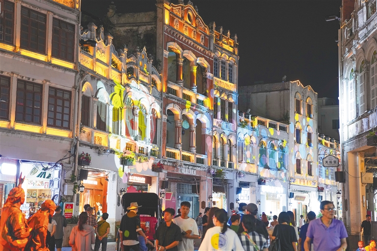 近年来,海口持续推进骑楼老街更新改造,通过灯光亮化、业态升级及文旅活动,让老街持续焕发新活力。