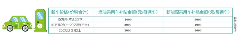 海口此次汽车置换更新补贴根据购买新车价格(价税合计)给予相应的一次性定额补贴。新车价格10万元(不含)以下,燃油乘用车补贴1000元/辆,新能源乘用车补贴3000元/辆;新车价格为10万元(含)—20万元(不含),燃油乘用车补贴2000元/辆,新能源乘用车补贴4000元/辆;新车价格为20万元(含)以上,燃油乘用车补贴3000元/辆,新能源乘用车补贴5000元/辆。资金有限先到先得。