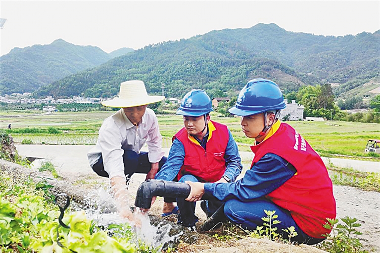② 国家电网陕西省平利县供电公司党员服务队在陕西平利县秋河村帮助农户调试抽水水泵。新华社发