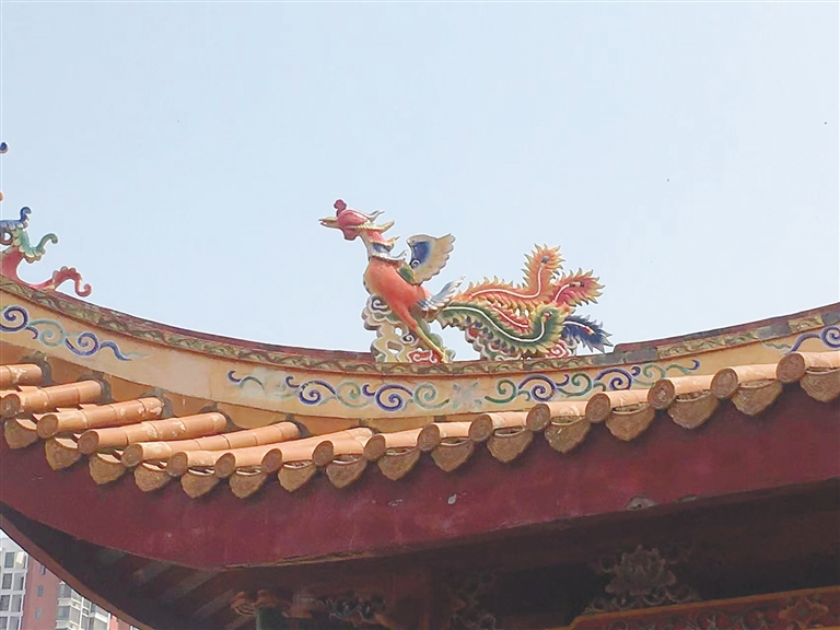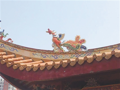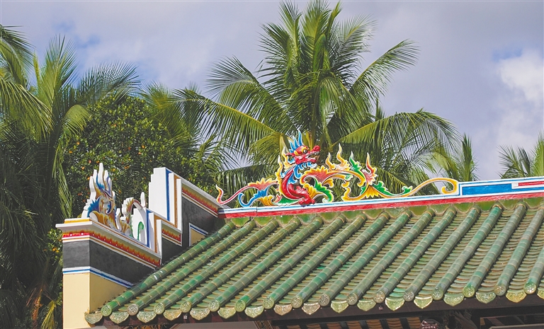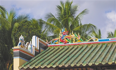 这三座建筑的屋顶上都有“双龙戏珠”脊兽,龙文化在海南大地延伸拓展,人们将对龙的崇拜、敬畏和喜爱融入生活的方方面面,因此在海南的大小庙宇中,常常可以看到“双龙戏珠”脊兽。