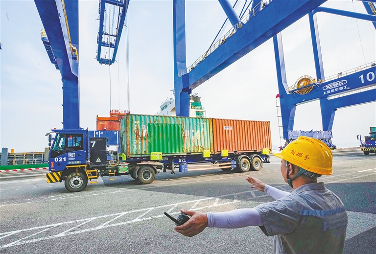 眼下,儋州洋浦正加快打造港航物流发展“样板间”,预计到2027年,集装箱吞吐量将突破350万标箱,较2025年再增长70%;到2035年,港口通过能力将跃升至2.25亿吨,并建成全球首个“智慧绿色零碳枢纽港”。