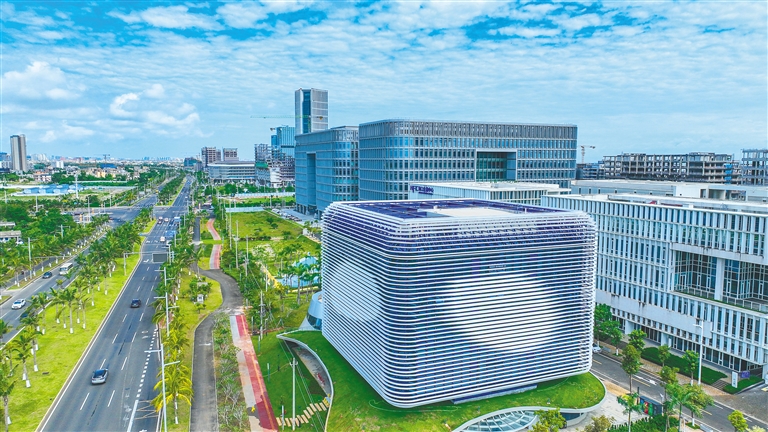 近日,俯瞰位于海口江东新区总部经济区(生态CBD)的江东智慧综合基地项目,该项目目前已完工,整体视觉效果充满科技感。项目投用后,将为区域内企业提供良好的办公环境和发展平台,助力人才集聚和产业升级。