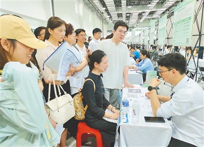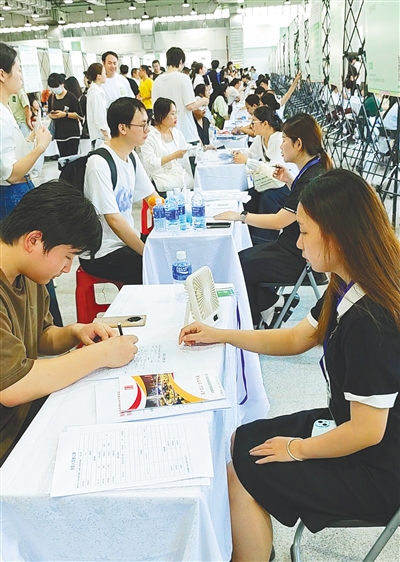 分区背后的根本支撑是产业体系。此次招聘会上,数千个岗位涵盖各行各业,尤其紧扣“4+3+3”现代化产业体系。