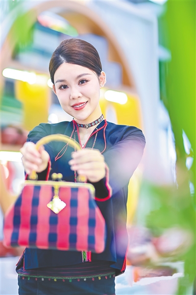 采访期间,一位四川观众捧着黎锦包包爱不释手:“这花纹太绝了!既有民族特色,又特别时髦。”