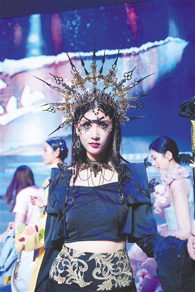 “整场演出打破传统模特走秀的单调模式,构建出以‘叙事性服装展示’为核心的全新舞台形态,为表演专业实践教学拓展了广阔的表达空间。”海南大学表演系主任曹舒秀教授介绍,当晚演出分为“心绎”“破界”“共生”三大篇章,涵盖九个原创剧目,每个剧目都通过“服装+剧情”的互动,营造出独特的叙事空间。