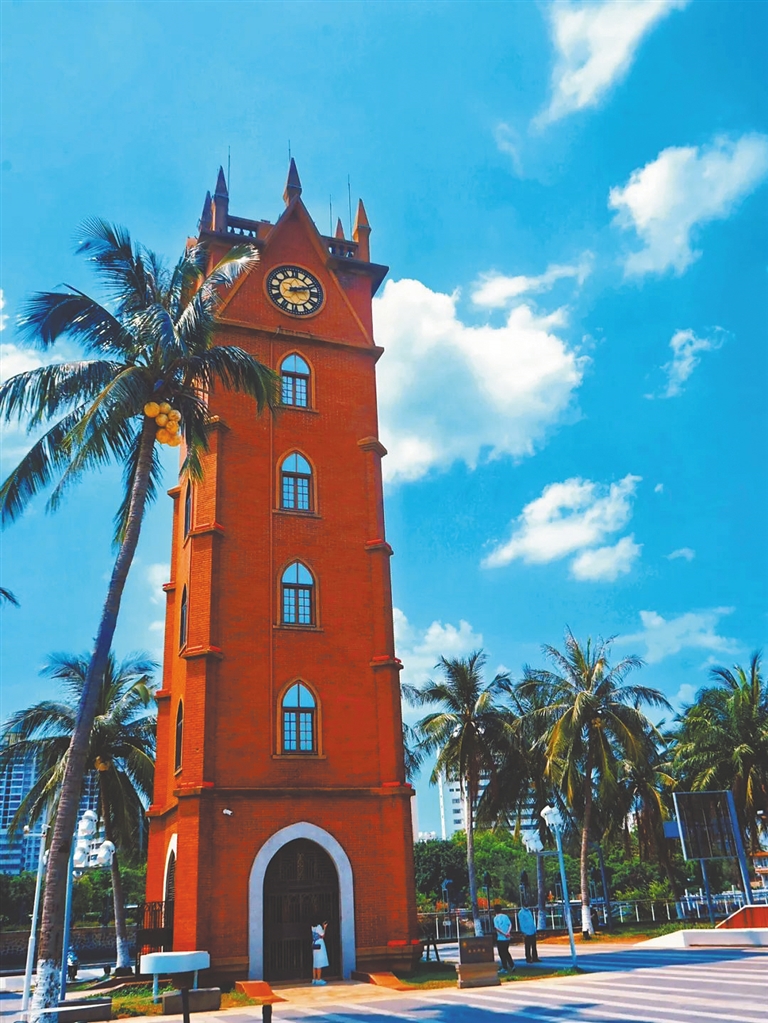 钟楼是什么时候建成的?今人各有记忆,有说建于1928年,也有说建于1929年,总之,一座欧式的钟楼就这么矗立在了海甸溪的边上。这里是一个港口,一个通商的港口,同时也是一个见证古往今来斗转星移的时间隧道。于是,弹丸之地的海口也成了开放口岸,海口海关有了,各国领事馆也有了,钟楼的对面是法国领事馆,领事馆建在海甸岛,之间隔了一条后溪,海口人管南渡江出海口这段叫后溪。