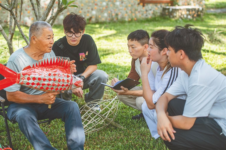 近日,“潭门人·海与时光的对话”海洋文化采风活动在琼海市潭门镇举行,非遗项目代表性传承人卢家炳向参加采风活动的学生介绍鲤鱼灯制作方法。舞鲤鱼灯是琼海沿海地区的民间风俗活动之一,“鲤鱼灯闹春”已入选第四批海南省非物质文化遗产名录。海南日报特约记者 蒙钟德 通讯员 陈世明 图/文