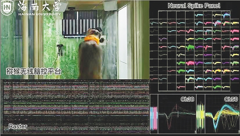 在海南大学实验室里,一只猕猴正在用“意念”玩电脑游戏。它紧盯着屏幕上的球,不用动手,仅靠“脑补”就能移动球的位置。