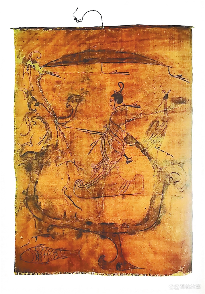 在残存的文物中,考古人员发现了另一件帛类文物——《人物御龙帛画》。《人物御龙帛画》中的男子形象生动传神,面部线条精微细腻、须眉毕现,服饰线条恰到好处地表现了长袍的质感和飘逸感。这幅帛画是中国早期肖像画的杰出代表,人们将其与出土于长沙陈家大山楚墓的《人物龙凤帛画》并称为“先秦绘画艺术中的双璧”。有专家认为,结合战国时期楚地的丧葬习俗,《人物御龙帛画》中的男子很可能就是墓主本人,子弹库帛书是其生前所用物品,死后随葬。