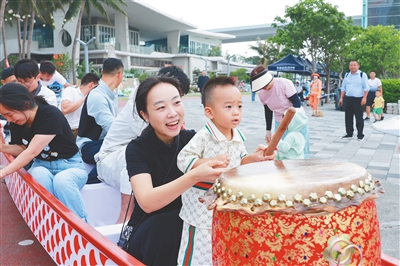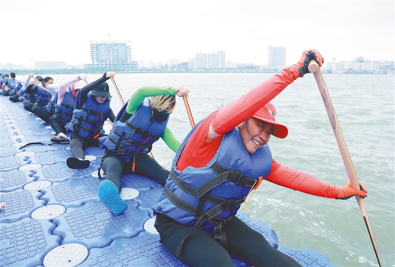 5月26日,市民游客在海口龙舟文化体验周上体验划旱地龙舟。海南日报全媒体记者 陈若龙 摄