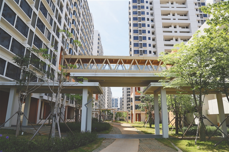 5月27日中午,洋浦经济开发区骄阳似火、酷暑难耐,当汗水浸透衣襟,闷热黏腻的体感让人心情烦闷。然而当海南日报全媒体记者走进洋浦产城融合安居工程,该小区不间断的连廊成了绝佳的“遮阳伞”,建筑布局为风“让路”,让人仿佛顿时置身于空调房内。
