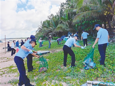 ③海南省公安厅反走私和海岸管理总队第二支队民警在东郊椰林开展海岸净滩活动。受访者供图