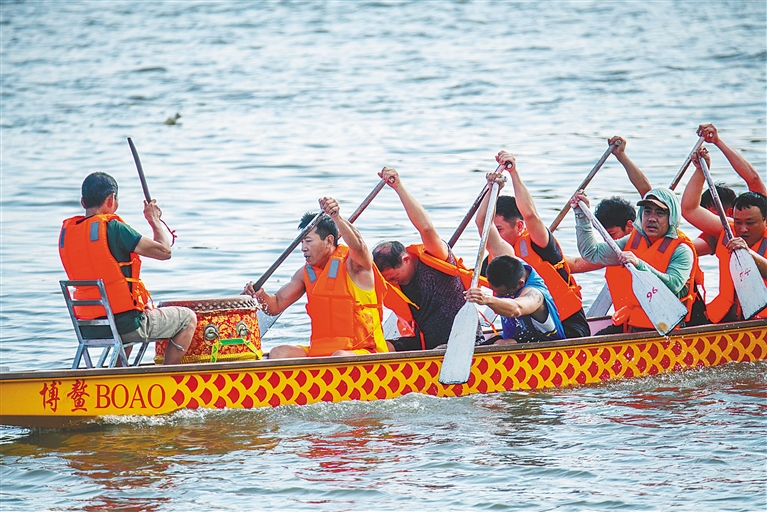 琼海博鳌龙舟大赛即将拉开帷幕,参赛队伍展开适应性训练。特约记者 蒙钟德 摄