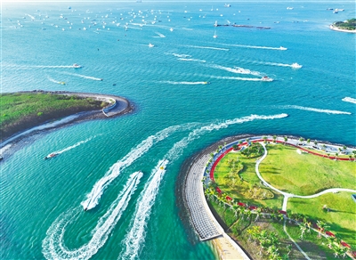 今年4月,一连多场国际盛会,吸引全球目光集聚琼岛:进阶到“5.0版本”的消博会吸引71个国家和地区4209个消费品牌参展,2025年海南自由贸易港全球产业招商大会单日签约额达2336亿元,中阿企业家大会吸引国内外政商界代表1000余人赴会。