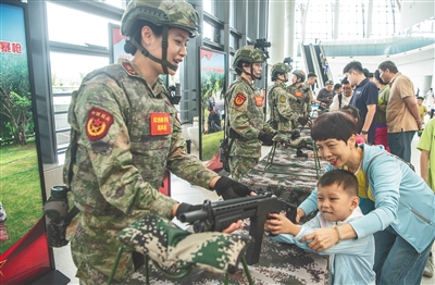6月1日,在中国(海南)南海博物馆举办的“蓝色国土 童心筑梦深蓝”主题国防教育活动上,小朋友“零距离”接触了解枪械。特约记者 蒙钟德 摄