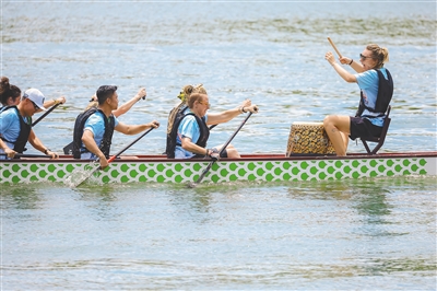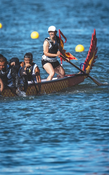 龙舟赛不仅吸引国人,还“圈粉”国际友人。2025“海口杯”端午国际龙舟邀请赛上,新加坡、马来西亚、菲律宾等国的龙舟队参加角逐。三亚市龙舟公开赛上,来自15个国家的外籍人士组成了两支国际龙舟队。他们尽管来自不同的国家,拥有不同的文化背景,却因为龙舟赛而聚,在劈波斩浪中尽情享受中国传统文化魅力。