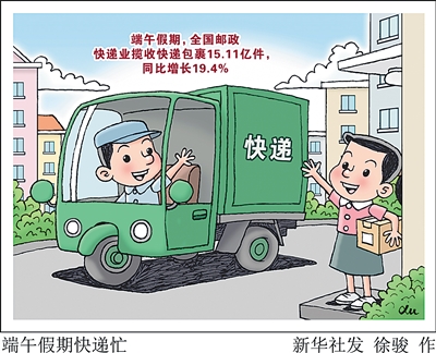 据新华社北京6月3日电(记者叶昊鸣)记者3日从国家邮政局获悉,根据国家邮政局监测数据显示,端午节假期(5月31日至6月2日),全国邮政快递业共揽收快递包裹15.11亿件,同比增长19.4%。