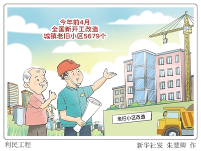 新华社北京6月4日电(记者王优玲)记者4日从住房城乡建设部获悉,今年前4个月,全国新开工改造城镇老旧小区5679个。分地区看,河北、重庆、辽宁、上海、浙江、湖北等6个地区开工率超过50%。