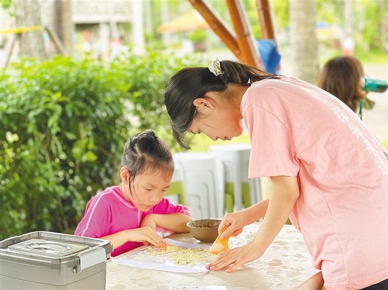 “动手包粽子、做香包,参与各色民俗活动,能够让小朋友感受到我们中华民族特有的节日气氛。”在这里,来自海口的游客李芬和孩子收获了一个趣味满满的端午假日。