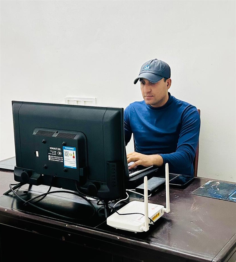 孵化中心右侧,最里面的办公室是巴基斯坦小伙可汗刚申请的,办公桌上摆满了主营产品椰子油、电子产品等。