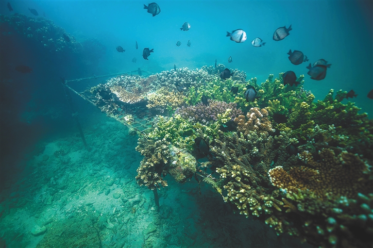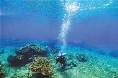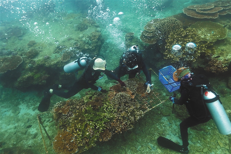 多年来,海南坚持生态立省,将珊瑚礁生态保护修复置于突出位置,多措并举,力争把珊瑚礁生态系统保护修复打造成海南建设国家生态文明试验区的标志性工程。而随着人们的海洋环保意识不断增强,越来越多的海底“植树造林者”,以智慧与汗水,为我国“蓝色国土”的可持续发展筑牢生态根基。