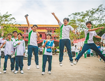 ⑤6月10日,在琼海市嘉积中学考点,考生合影留念。特约记者 蒙钟德 摄