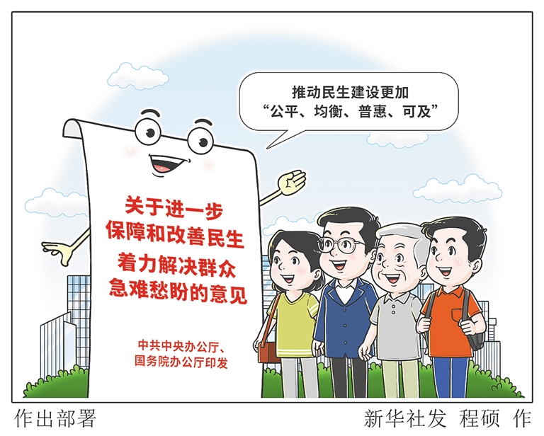 中共中央办公厅、国务院办公厅近日印发《关于进一步保障和改善民生 着力解决群众急难愁盼的意见》,从增强社会保障公平性、提高基本公共服务均衡性、扩大基础民生服务普惠性、提升多样化社会服务可及性等方面作出部署。