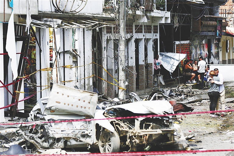 图为在哥伦比亚西南部考卡省科林托镇拍摄的爆炸袭击现场。新华社发