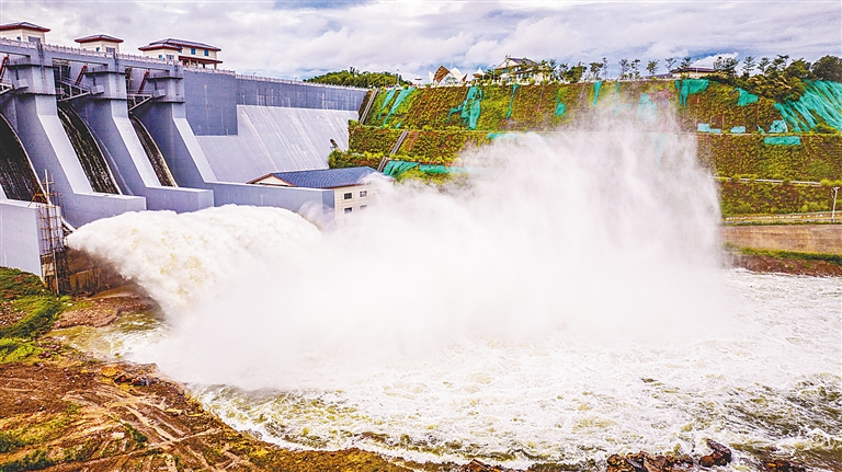 为应对台风“蝴蝶”带来的持续强降雨压力,天角潭水库于6月12日开启闸门泄洪。特约记者 吴文生 摄