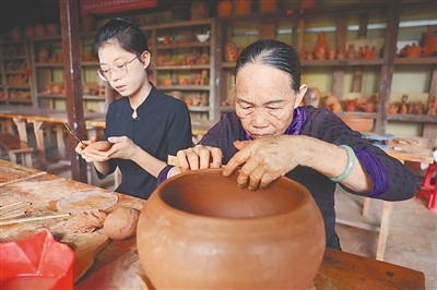黎族原始制陶技艺是黎族文化的重要组成部分,承载着历史记忆和民族智慧,展现了黎族人对美的追求。2006年,该技艺被列入第一批国家级非物质文化遗产名录。但因社会知晓率不高、产品市场竞争力不足等,技艺传承一度面临“后继无人”这一突出问题。“现在文化娱乐项目多,很多年轻人对这个不感兴趣。”在和长辈的交流中,董佳佳感受到了传承这一古老技艺的紧迫性。