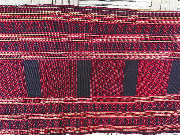 “我接了2件纯手工黎锦服饰的单子,赚了七八千元。”南开村村民、今年50岁的绣娘陈春英说。