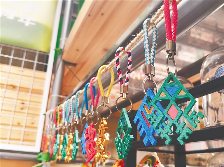 造型精美的钥匙扣、色彩鲜艳的冰箱贴、富有创意的耳环……这些并非传统的织物,而是运用3D打印技术塑造的黎锦几何艺术品。