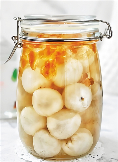 除了制作甜品外,荔枝还可以用来酿酒。据载,汉朝时就有此做法:“以荔枝浸酒,久而色红味甘。”宋朝《武林旧事》中提到的“荔枝膏酒”,应为宫中制作的荔枝酒。明朝李时珍在《本草纲目》中称荔枝酒可“补脾肺”,清朝屈大均更是在《广东新语》中盛赞荔枝酒“醇美如十八娘”。