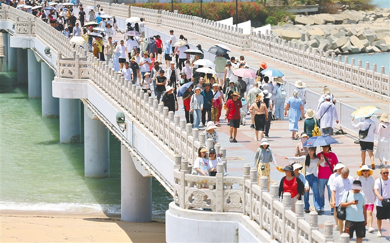 6月15日,在三亚南山文化旅游区,游客欣赏风雨后的夏日美景,感受独特的人文魅力。