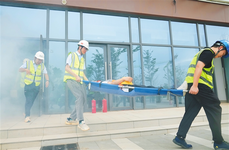 6月17日上午,海控能建环境健康安全部牵头组织海南医科大学第一附属医院江东新院区项目、海南医科大学桂林洋新校区项目,联合海口市美兰区桂林洋消防救援站及海南医科大学第一附属医院开展实战化联合应急演练。