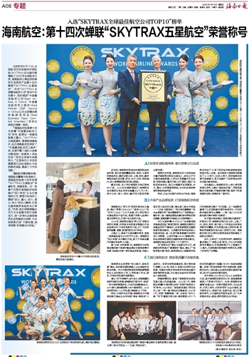 海南航空:第十四次蝉联“SKYTRAX五星航空”荣誉称号