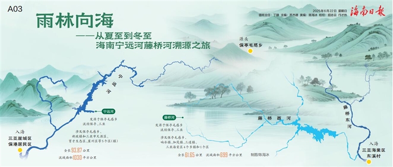 继去年溯源三亚河之后,6月21日,2025年宁远河—藤桥河溯源活动正式启动。从今日起,海南日报推出《雨林向海——从夏至到冬至海南宁远河藤桥河溯源之旅》大型系列报道,溯河而上,探寻神奇的自然景观与生态奥秘,感受沿途村庄的历史人文,讲好海南建设国家生态文明试验区的生动故事。