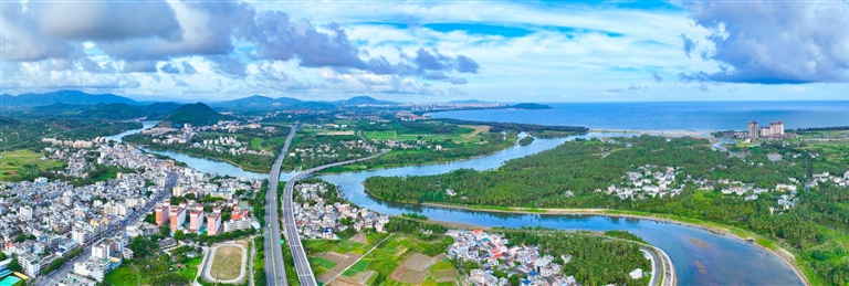 依水而生,发展农业得天独厚,河流浇灌出崖州千年的稻浪,创造了南繁育种的光彩业绩;因水而兴,大疍港、保平港历史上曾繁荣一时,港口贸易加速了物资流通、文化交融与经济的繁荣;如今,崖州湾科技城高新区正在宁远河下游冲积平原上兴起。