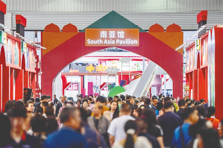 近年来,中国与南亚国家持续推进各领域务实合作,经贸往来势头良好。2024年,中国和南亚国家贸易额接近2000亿美元,十年间实现翻番,中国连续多年成为巴基斯坦、孟加拉国等国最大贸易伙伴。本届南博会有73个国家、地区和国际组织参会,2500多家企业参展。