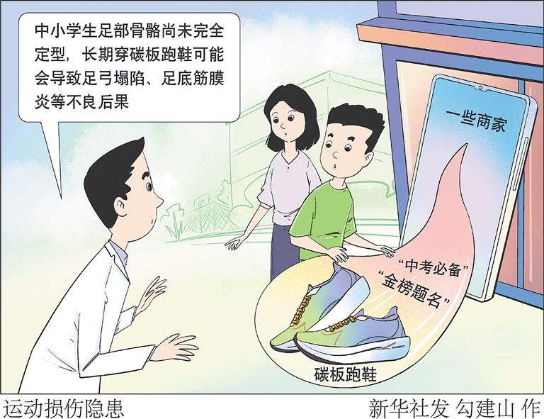 兰州大学体育教研部副教授丁督前说,针对“碳板跑鞋校园热”这一现象,教育部门、学校可以开展专项科普进校园活动,邀请相关专家给家长、学生讲解长期穿碳板跑鞋的多种危害,让他们清楚知道碳板跑鞋的专业功能和适用场景。此外,市场监管部门也要主动作为,要求商家规范经营,对误导消费者等行为予以严惩。